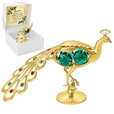 Figurka pozłacany Paw z kryształem z Dedykacją