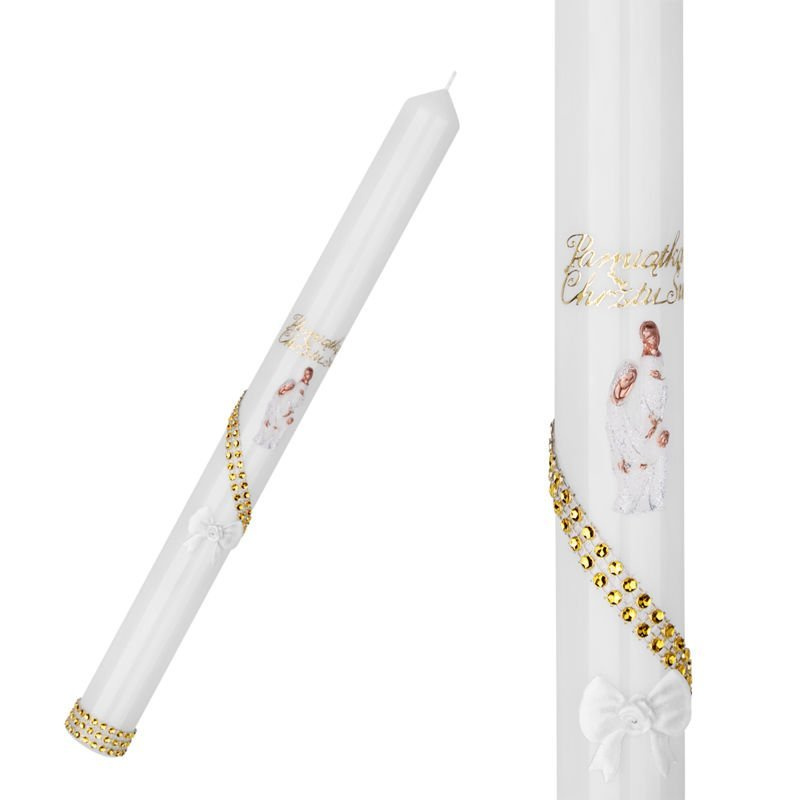 Świeca Święta Rodzina Gromnica Hologramowa na chrzest dla dziecka złota