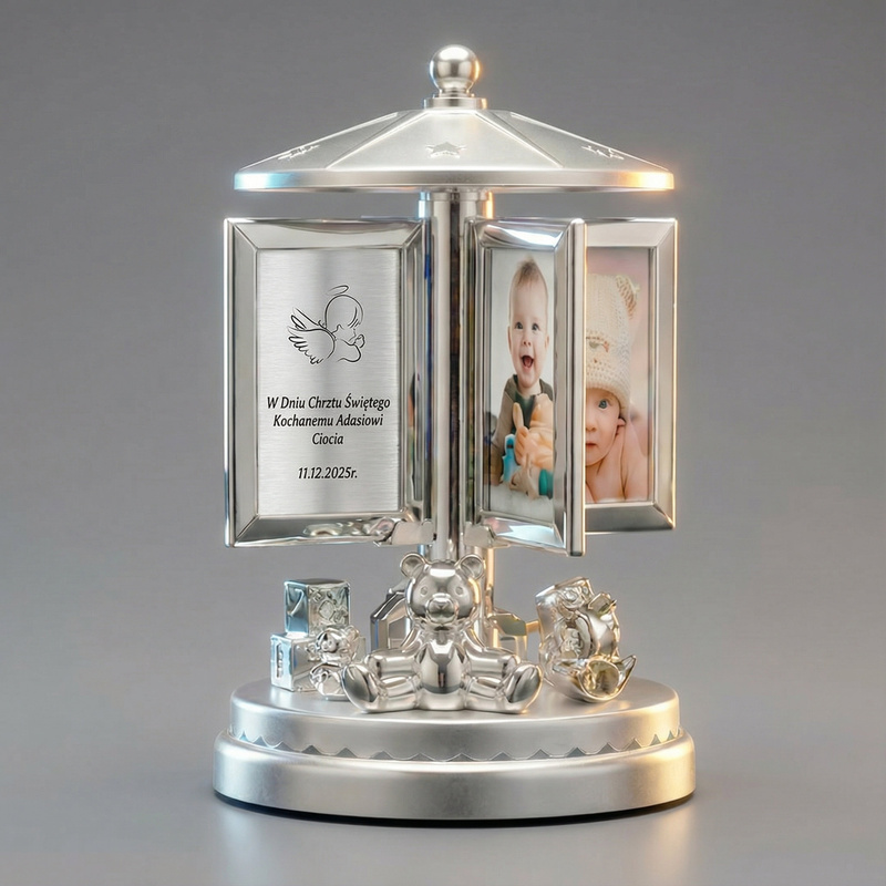 Szatka do chrztu Pamiątka na Chrzest ze Zdjęciem Srebrna