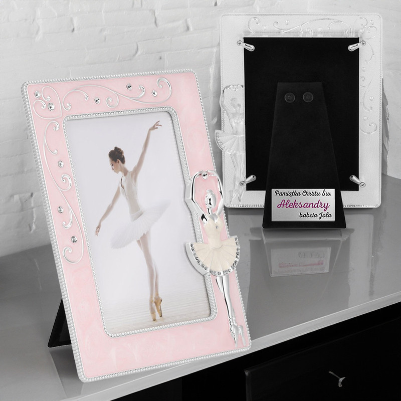 Ramka na Zdjęcie Różowa Baletnica Pamiątka Chrzest Roczek Dedykacja