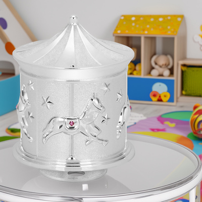 Pozytywka karuzela posrebrzana na roczek dla dziewczynki z grawerem
