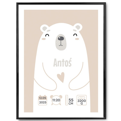 Plakat na Baby Shower / Metryczka / Personalizacja / Prezent na Narodziny Dziecka / Miś / Szkło