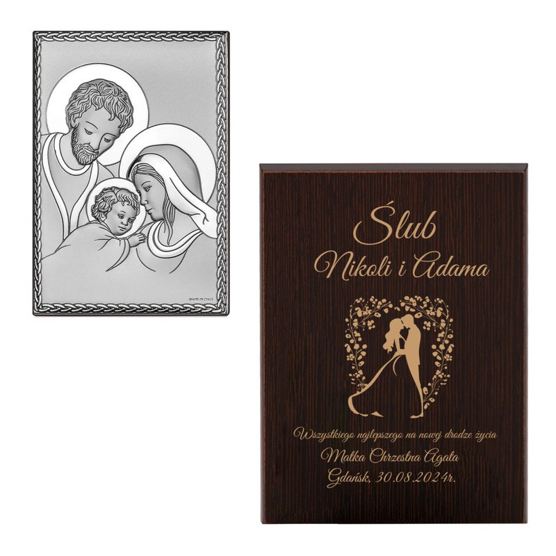 Posrebrzany obrazek na ślub Św. Rodzina MIRO-SILVER® z grawerem