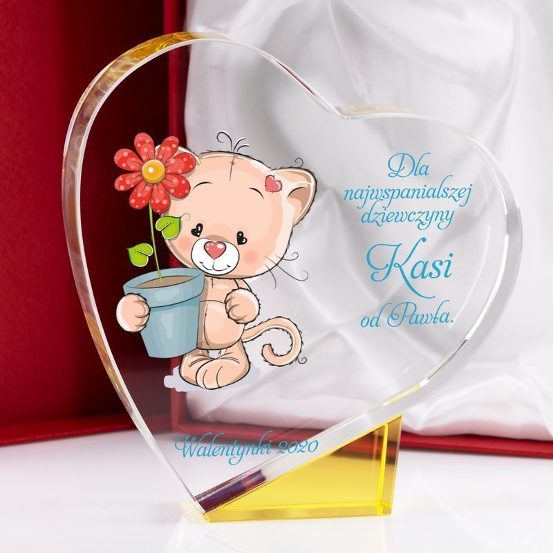 Szklana statuetka z Kolorowym Nadrukiem - Twój indywidualny tekst i grafika na Ślub / Chrzest / Urodziny / Zawody | prostokąt 15.5 cm x 24.5 cm