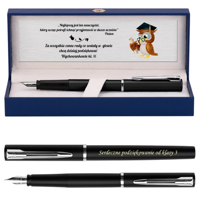 Czarny długopis i ołówek 2w1 / Prezent dla nauczyciela, ucznia w pudełku / Prezent z Grawerem