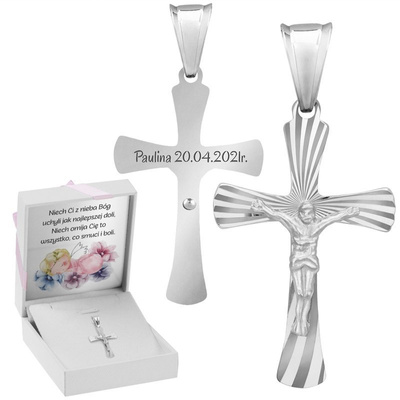 Srebrny 925 Krzyżyk z Jezusem Chrzest Komunia Bierzmowanie Grawer