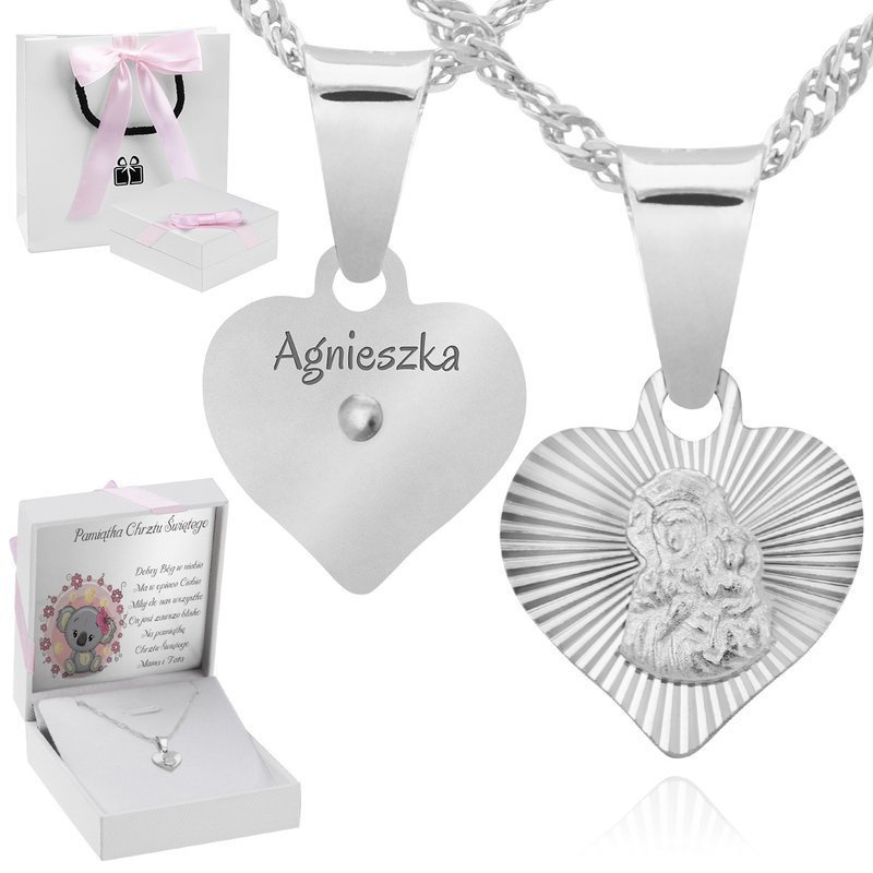 Srebrny Medalik Matka Boska Częstochowska w Sercu Grawer