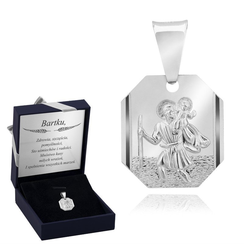 Srebrny Medalik 925 ze Św. Krzysztofem Z Dedykacją
