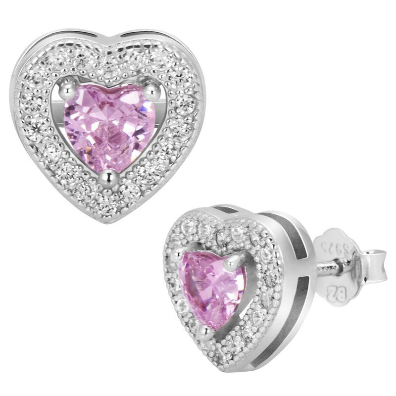 Srebrne kolczyki serca pr.925 z różowymi i białymi cyrkoniami