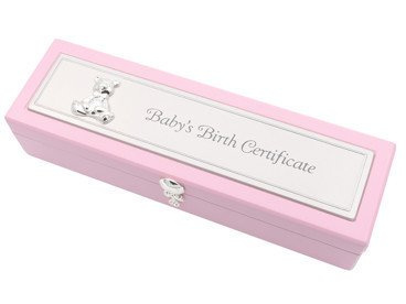 Szkatułka różowa na akt urodzenia Pamiątka na Chrzest Roczek