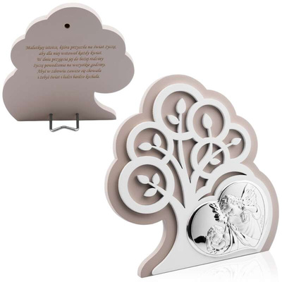 Obrazek Srebrny Drzewo Życia Anioł Stróż Pamiątka Chrztu Grawer