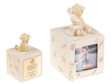 Błękitna Karuzela miś z pozytywką, szkatułką i miejscem na 4 zdjęcia na chrzest roczek DEDYKACJA
