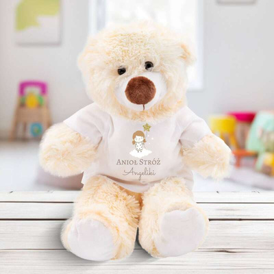 Miś pluszowy na Chrzest / Pamiątka Chrztu Świętego / Anioł Stróż / Nadruk na koszulce / Personalizacja / Prezent na chrzest