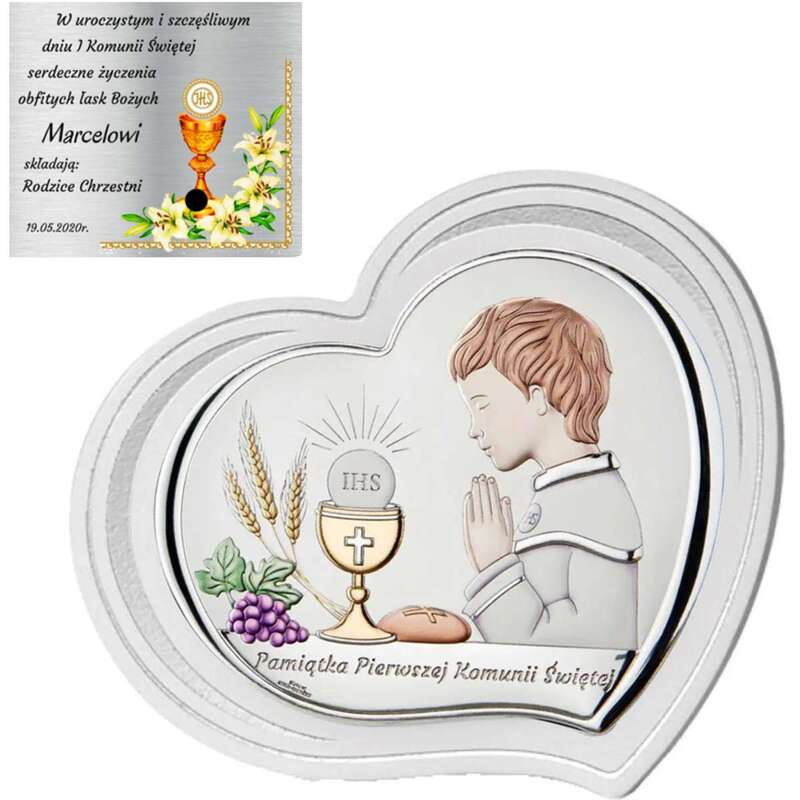 Obrazek srebrny Grawer Pamiątka na I Komunia Św. z Dedykacją