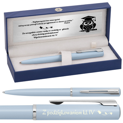 Prezent dla Nauczyciela / Długopis z Grawerem / Waterman Allure pastelowy niebieski / Ozdobne Etui Waterman