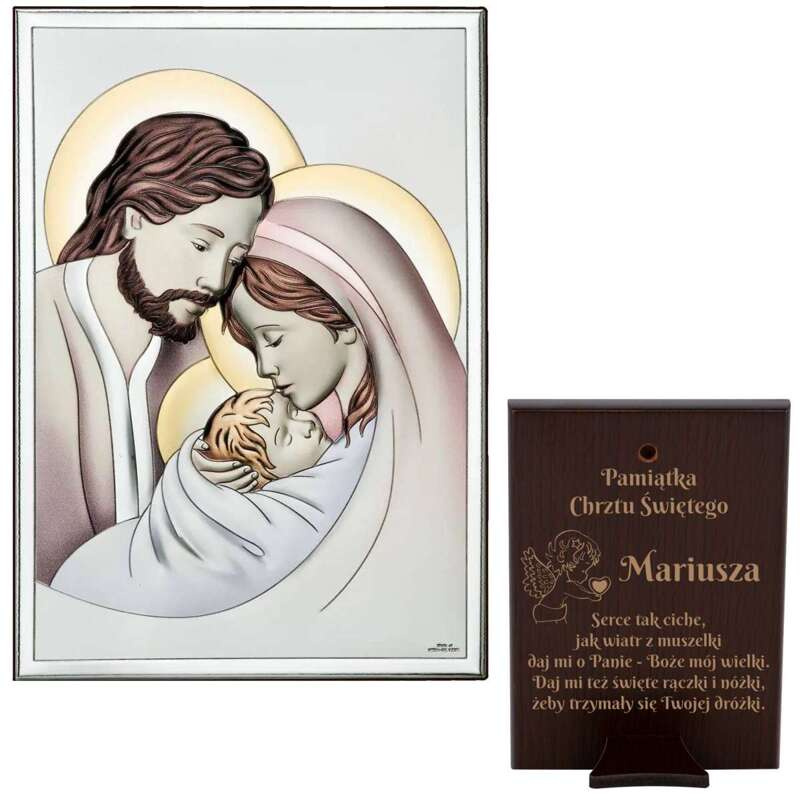 Święta Rodzina – obrazek na chrzciny z grawerem laserowym