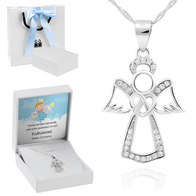 Srebrny naszyjnik pr.925 Aniołek Grawer