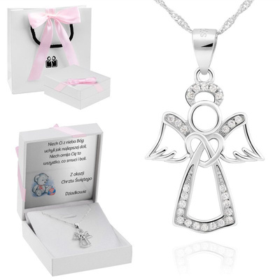 Srebrna Zawieszka Aniołek z cyrkoniami srebro pr. 925 Dedykacja