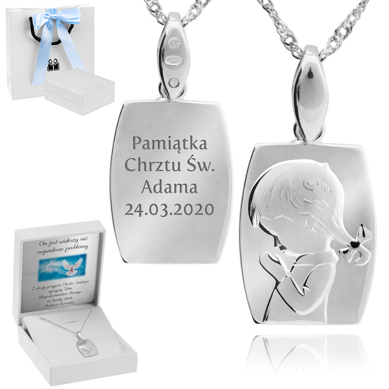 Srebrny medalik pr. 925 modlące się dziecko Grawer