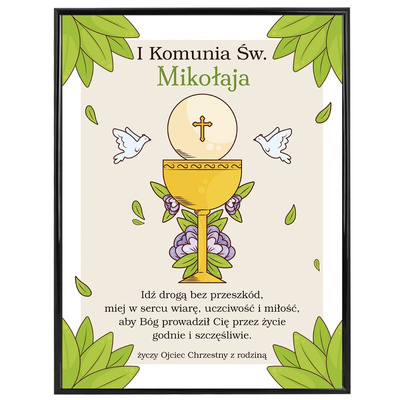 Plakat na Komunię / Pamiątka Komunii z dedykacją / Własny Nadruk / Hostia / Ramka ze szkłem