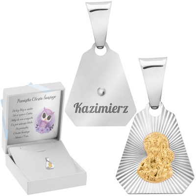 Srebrny Medalik Z Pozłacaną Matką Boską Częstochowską Z Grawerem