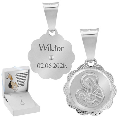 Srebrny Medalik Matka Boska Częstochowska Z Dedykacją