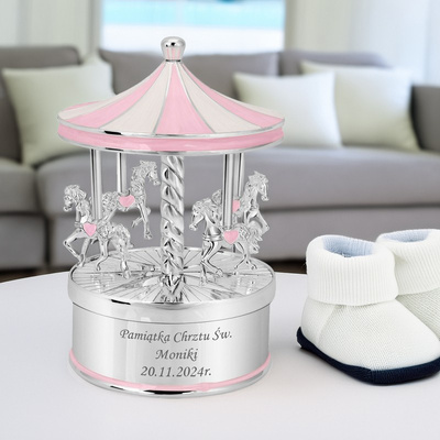 Pozytywka różowa karuzela Posrebrzana z Grawerem