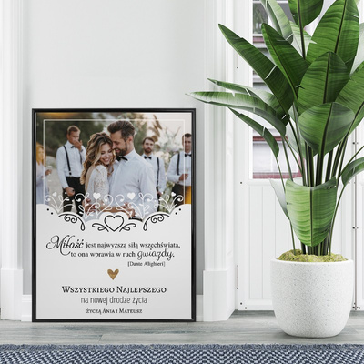 Plakat ze zdjęciem w ramce / Prezent na ślub / Czarna ramka 30x40 cm z plexi