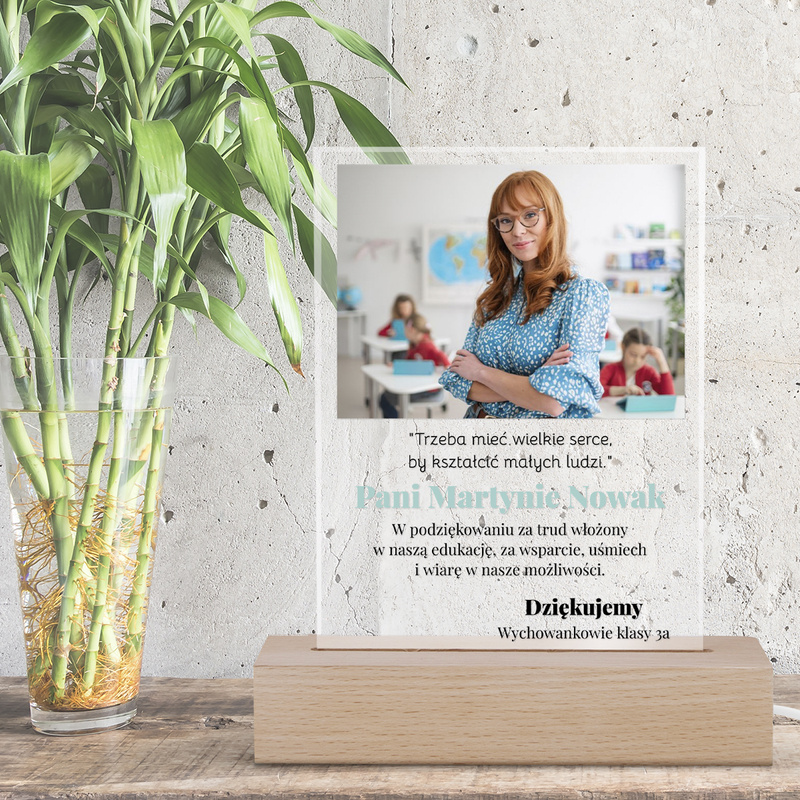Podświetlana ramka LED z dedykacją i zdjęciem – Prezent dla Nauczyciela
