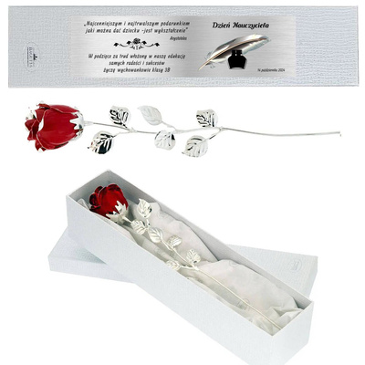 Pojedyncza Różowa Róża z personalizacją - wyjątkowy upominek dla nauczyciela