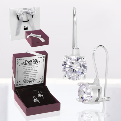 Kolczyki z białą cyrkonią srebro 925 z dedykacją w zestawie