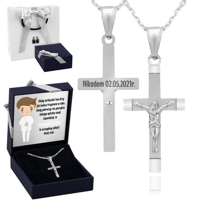 Srebrny 925 Krzyżyk z Jezusem Komunia Chrzest Dedykacja