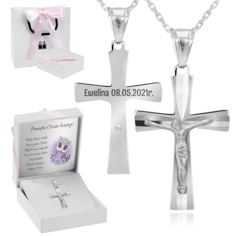 Krzyżyk srebrny pr.925 z Jezusem chrzest komunia bierzmowanie Grawer