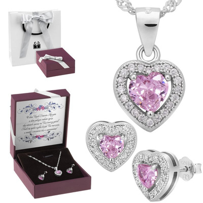 Srebrne Kolczyki Serca z Różowymi Cyrkoniami Dedykacja