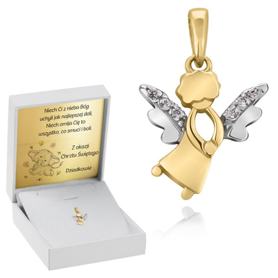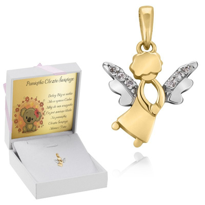 Złoty krzyżyk pr. 585 z Jezusem / prezent na I Komunie Św., Chrzest Św., Bierzmowanie / Grawer