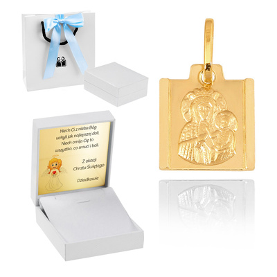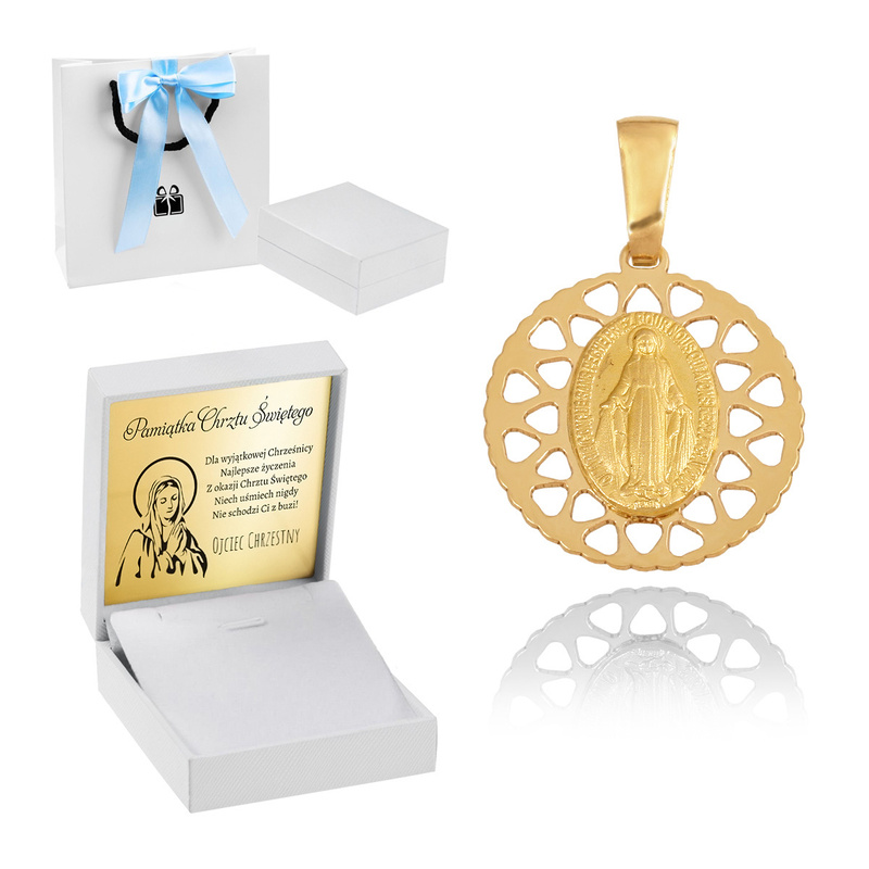Medalik ze złota / Matka Boska / Własna dedykacja / Złoto pr. 585 / Pamiątka na Komunię dla dziewczynki