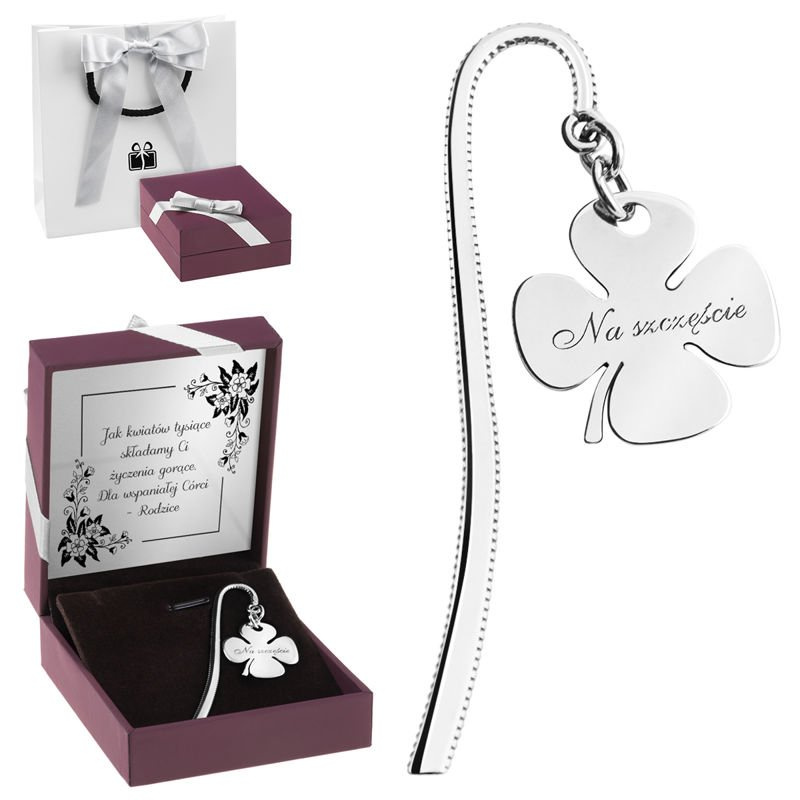 Zakładka do książki pr. 925 koniczynka Na szczęście z dedykacją