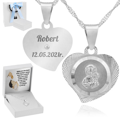 Srebrny Medalik z Matką Boską W Sercu Z Grawerem