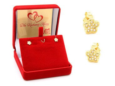 Srebrne kolczyki pr 925 kwiatki złocone Chrzest Roczek Pamiątka Dedykacja GRAWER