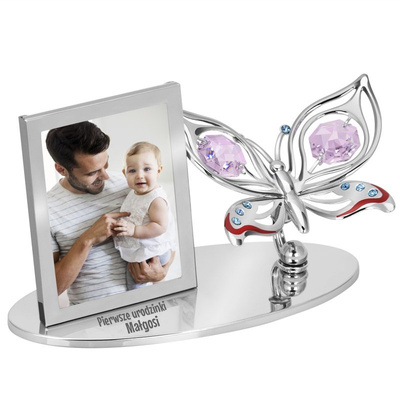 Ramka na zdjęcie Motyl Kryształ Chrzest Roczek Urodziny Grawer