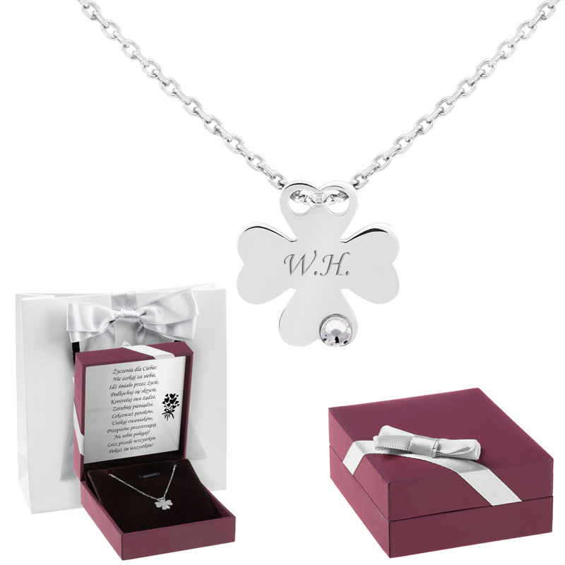 Na Dzień Mamy: wisiorek koniczynka 925 z grawerem i łańcuszkiem