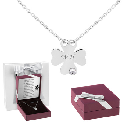 Wisiorek koniczynka 925 w welurowym pudełku z grawerem i dedykacją