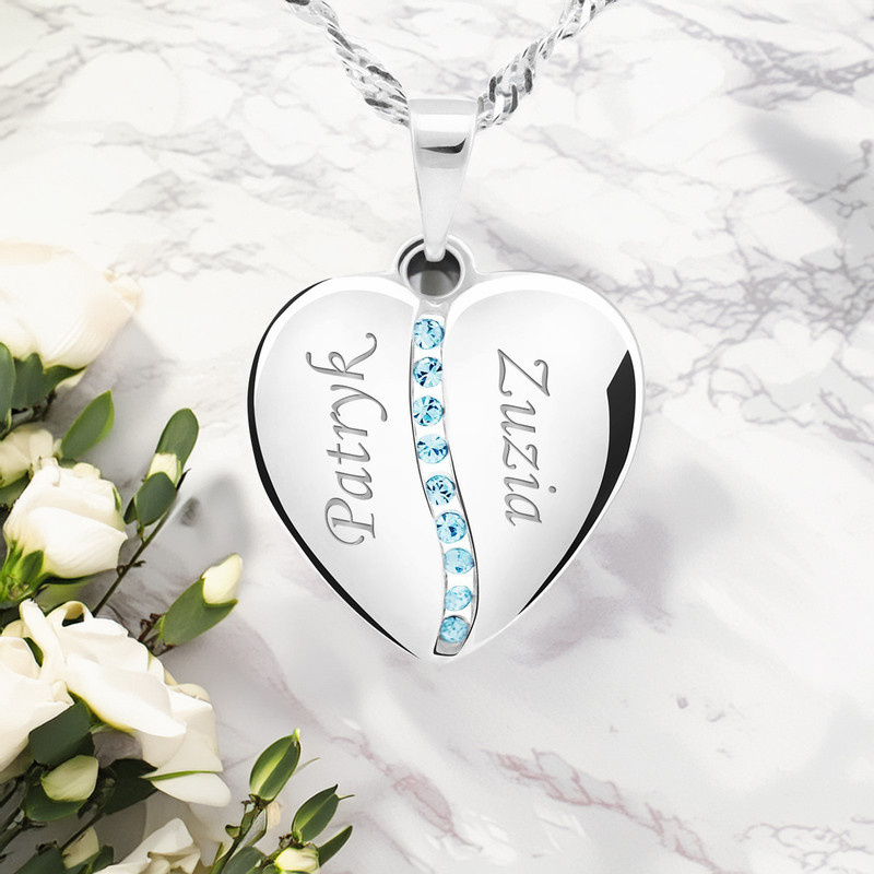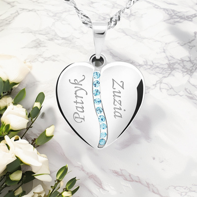 Wisiorek Serce Duże Wypukłe Błękitne Kamienie Grawer i Dedykacja