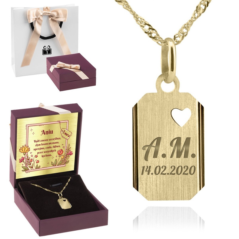 Srebrny wisiorek pr. 925 z grawerunkiem w pudełku bordowym