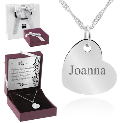 Wisiorek serce ze srebra 925 z grawerem, w komplecie z łańcuszkiem
