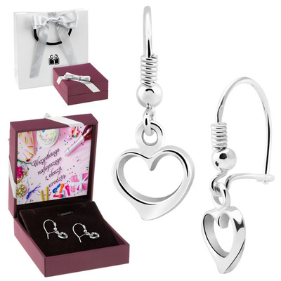 Walentynki: Wiszące srebrne kolczyki serca 925 z dedykacją