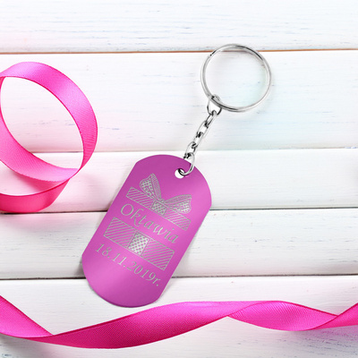Brelok nieśmiertelnik różowy do kluczy z grawerem