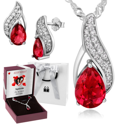 Komplet: naszyjnik i kolczyki z rubinową cyrkonią, dedykacja