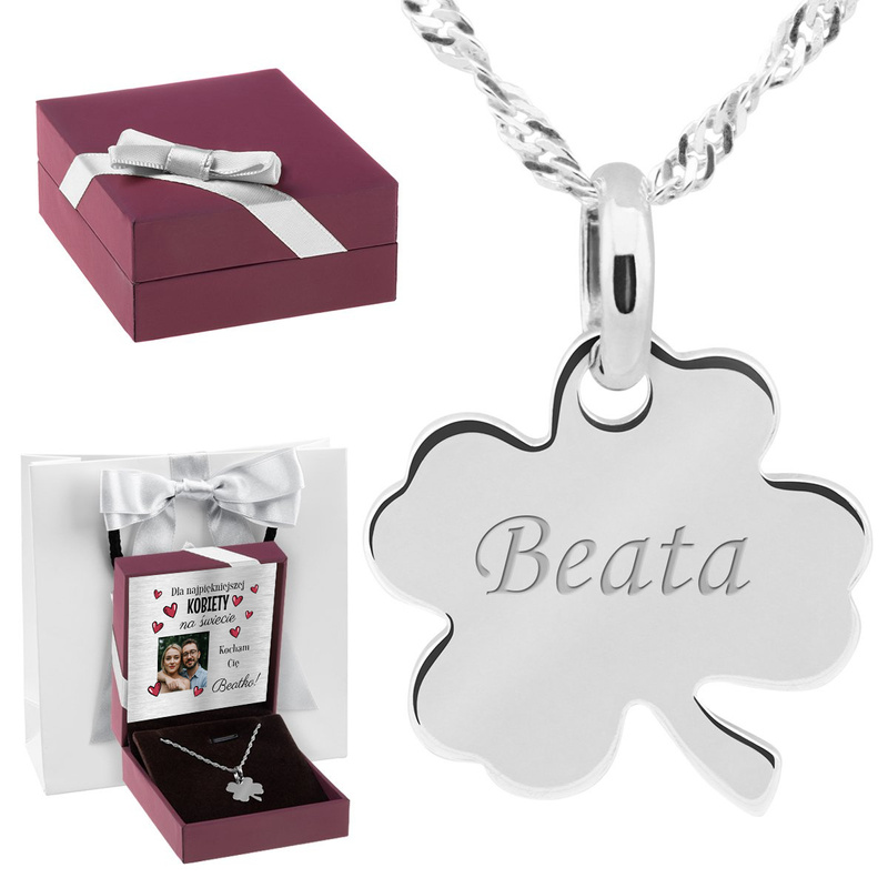 Naszyjnik koniczynka srebro pr.925 z grawerem i dedykacją