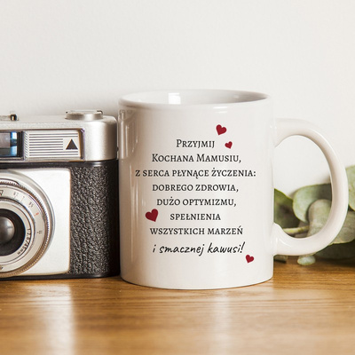 Dzień Mamy: kubek Smacznej Kawusi dla mamy ze zdjęciem i napisem